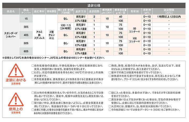 他の画像を見る 屋内加熱設備外面、プラント外面、焼却炉外面に最適です! 【耐熱温度500℃】 オキツモ No.505 <シルバー(銀)/つや消> 16kg 耐熱塗料 上塗り (シリコーン系樹脂塗料 溶剤型) okitsumo おきつも (スタンダードシルバー) 販売価格 ¥ 66,000 税込 会員価格 ¥ 64,020 税込 カートに入れる お気に入りに登録する (0)
