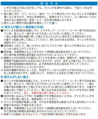 用途 大理石、御影石、擬石、磁器タイル等の艶出し、保護及び汚れ防止