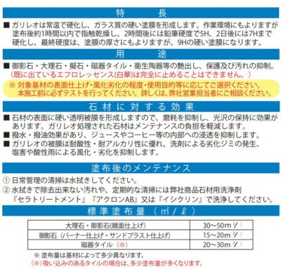 【業務用】常温で硬化しガラス質の硬い被膜を形成する石材用コート剤!