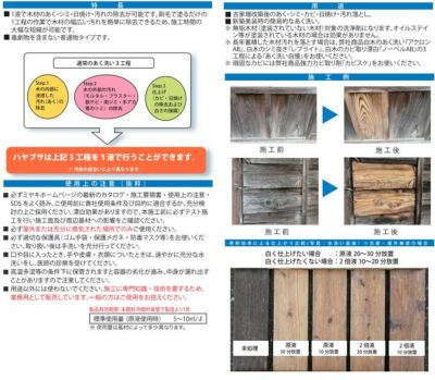 用途 ・古家増改築後のあく・シミ・カビ・日焼け・汚れ落とし。