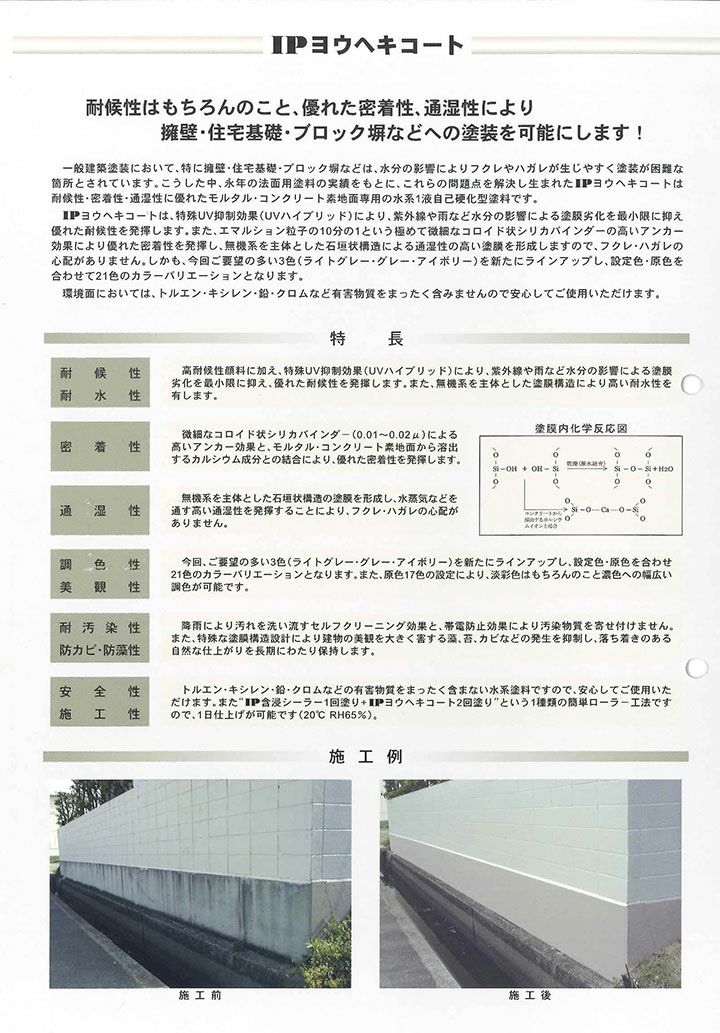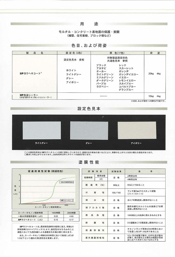 他の画像を見る 密着性・通湿性に優れた住宅基礎・ブロック塀に最適! IPヨウヘキコート 4kg(インターナショナルペイント/水性/基礎/ブロック塀) 販売価格 ¥ 8,250 税込 会員価格 ¥ 8,030 税込 カートに入れる お気に入りに登録する (0)