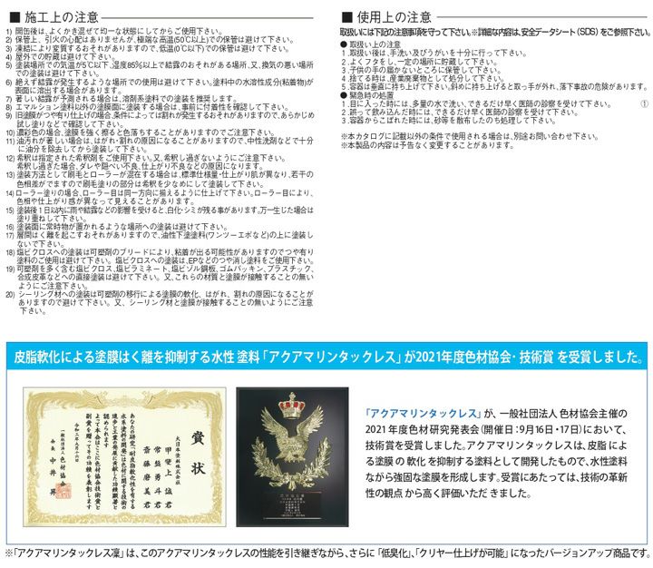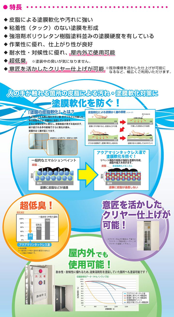 他の画像を見る 皮脂による汚れ・塗膜の軟化を防ぐ水性硬質塗料! アクアマリンタックレス凛 クリヤー(つやあり) 4kg (大日本塗料/室内/水性) 販売価格 ¥ 9,680 税込 会員価格 ¥ 9,350 税込 カートに入れる お気に入りに登録する (0)