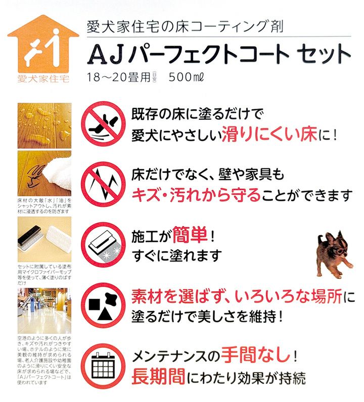 他の画像を見る ★床の滑り、キズ・汚れ、臭いはこれ1本で解決します! AJパーフェクトコートセット 500ml (ガラスコーティング剤 木床 金属 木材) 販売価格 ¥ 27,500 税込 会員価格 ¥ 26,400 税込 カートに入れる お気に入りに登録する (0)