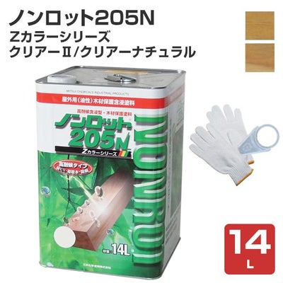 【P10倍!】 ノンロット205N Zカラー 透明系 14L <2色> WPステイン (油性 超撥水 耐UV 高耐候 木材保護 屋外 木部用 ウッドデッキ) 前田工繊産資/三井化学産資(軍手+注ぎ口プレゼント)のレビューを書く