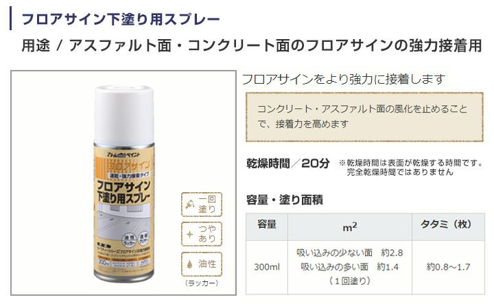 他の画像を見る フロアサインの密着力アップ! フロアサイン 下塗り用スプレー 300ml(アトムハウスペイント/路面標示材用下塗り材/油性) 販売価格 ¥ 1,210 税込 会員価格 ¥ 1,155 税込 在庫切れ 詳細を見る お気に入りに登録する