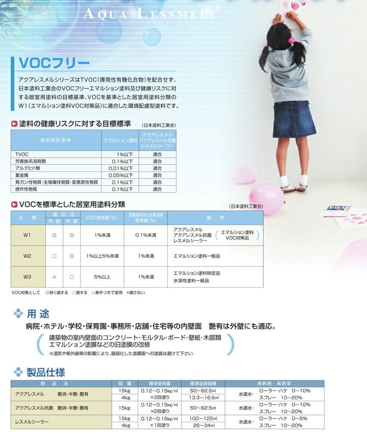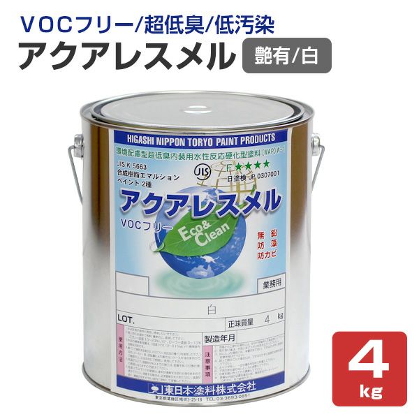 他の画像を見る ★TVOC(揮発性有機化合物)を配合しない環境配慮型塗料!病院やホテル、学校、保育園などに最適です。 アクアレスメル 半艶 白 4kg (水性反応硬化型塗料/東日本塗料) 販売価格 ¥ 5,830 税込 会員価格 ¥ 5,660 税込 カートに入れる お気に入りに登録する