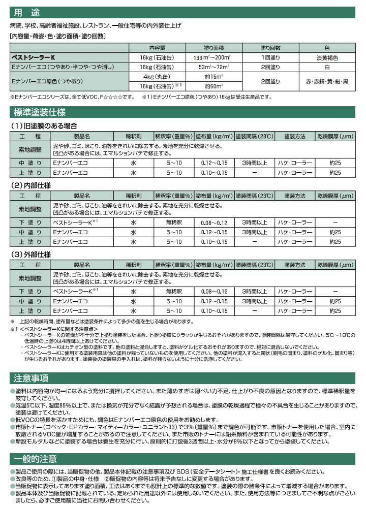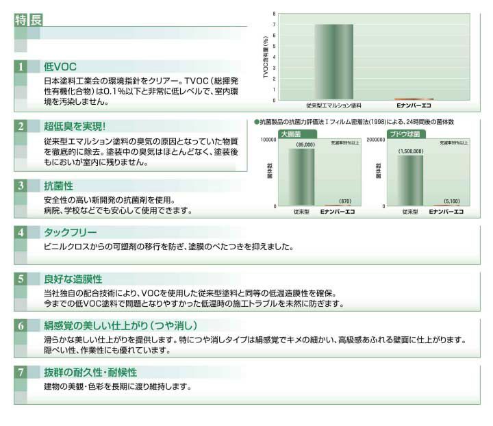 他の画像を見る 超低臭・低VOC・抗菌など数々の機能を付加した環境対応型の水性エマルション塗料! Eナンバーエコ 半つや 白 16kg (水性エマルション塗料/アトミクス) 販売価格 ¥ 16,500 税込 会員価格 ¥ 16,000 税込 カートに入れる お気に入りに登録する