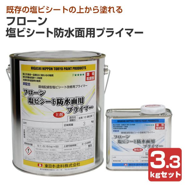 他の画像を見る 塩ビシート防水層を塗装可能にする下塗りプライマー!水性/2液/下塗り材 東日本塗料 フローン 塩ビシート防水面用プライマー 3.3kgセット 販売価格 ¥ 8,470 税込 会員価格 ¥ 8,220 税込 カートに入れる お気に入りに登録する